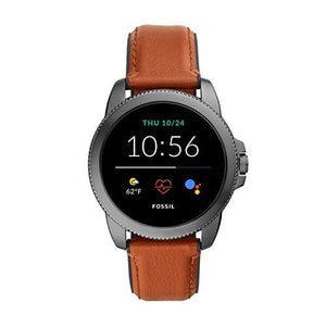 Fossil 44mm Gen 5E Stainless Steel and Leather Touchscreen Smart Watch, Color: Smoke, Brown (Model: FTW4055)