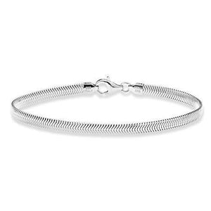 Miabella 925 Sterling Silver Italian Solid Diamond-Cut Flat Snake Dome Herringbone Chain Link Bracelet - Ladies Necklaces - 4aShopOnline