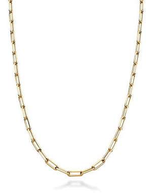 Add style to a basic look with this 18K gold plated sterling silver Paperclip necklace. Our diamond cut rectangular links are more reflective than the standard Paperclip chain and will shine in any light. Bold, yet simple, it's the perfect accessory for casual or formal outfits. Wear alone for modern elegance, with your favorite pendant or as an on-trend layering chain. This timeless necklace is comfortable for all day wear and an essential addition of your jewelry box. Wear alone or layered with others for a more modern look. Made in Italy.