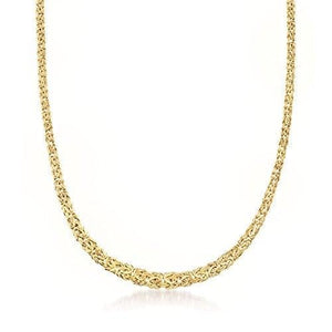 Handcrafted in polished 14kt yellow gold, the traditional woven design graduates slightly at the center. It's the perfect accessory to pair with everything from a chic sweater to a little black dress. Your pairing options are endless with this time-honored favorite. Graduates from 3/16" to 5/16". Lobster clasp, 14kt yellow gold Byzantine necklace. Each Ross-Simons item arrives in a fine jewelry presentation box. Shop Ross-Simons jewelry risk-free as all items include a 30-day, 100% money-back guarantee.