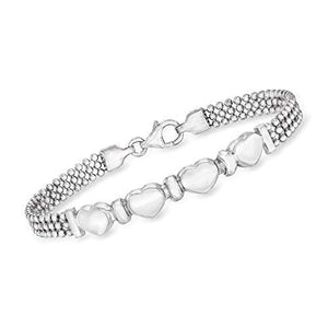 Ross-Simons Italian Sterling Silver Heart Beaded Bracelet. 7 inches