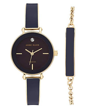 Anne Klein Women's Plum Purple/Gold Genuine Diamond Dial Bangle Watch with Bracelet Set