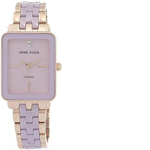 - Lavender mother-of-pearl dial with genuine diamond at 12; rose gold-tone hands and markers