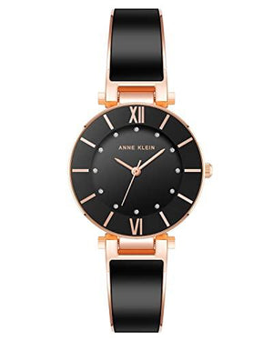 Confidently Bold: The Anne Klein Women's Glitter Accented Dial Bangle Watch exudes an air of confident boldness. Embrace the enchanting combination of black and rose gold that sets you apart with effortless poise.