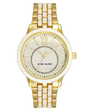 Indulge in the enchanting beauty of the Anne Klein Women's Glitter Accented Dial Bracelet Watch AK/3924. With its mesmerizing gold and white design, this timepiece is a true reflection of elegance and sophistication.