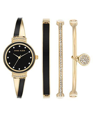 Step into the spotlight, embrace the allure of gold and black, and let your style shine with the Anne Klein Women's Crystal Bangle Dress Watch.
