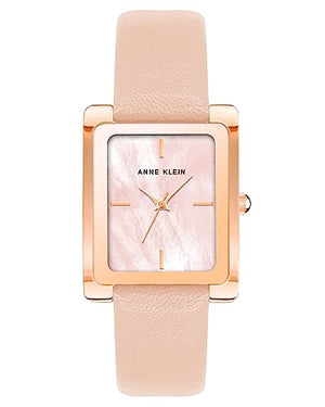 Crafted to elevate every moment, the Anne Klein Women's Blush Pink/Rose Gold Leather Strap Watch is not just an accessory; it's an extension of your sophistication and grace.