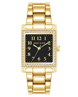 Anne Klein Women's Gold/Black Premium Crystal Accented Bracelet Watch