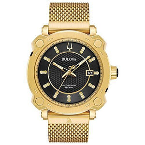 Gold-tone stainless steel case, black dial with gold-tone accents, calendar feature and sweeping second hand, anti-reflective sapphire glass, screw-back case with Grammy logo stamp on back, gold-tone mesh stainless bracelet with double-press deployant closure, and water resistance to 100 meters. SHOP YOUR FAVORITE BULOVA WATCH BY CLICKING TO AMAZON TO PURCHASE ONLINE.