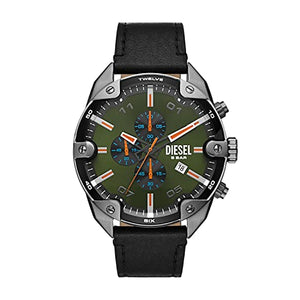 Introducing the Diesel Men's Spiked Quartz Stainless Steel and Leather Chronograph Watch. It's not just a timepiece; it's a bold statement crafted for those who redefine style on their terms.