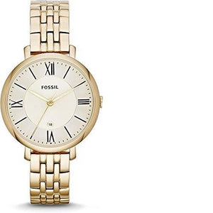 Features of Fossil Women's Jacqueline Quartz Stainless Steel Three-Hand Date Watch, Color: Gold (Model: ES3434)