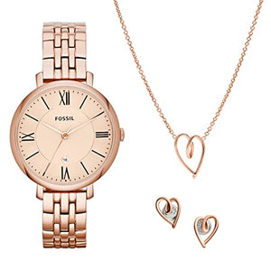 Fossil Women's Jacqueline Quartz Stainless Steel Watch and Jewelry Gift Set, Color: Rose Gold (Model: ES5252SET)