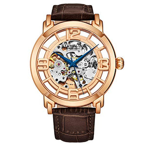 Stuhrling Original Skeleton Watches for Men - Mens Automatic Watch Self Winding Mens Dress Watch - Mens Winchester 44 Elite Watch Mechanical Watch for Men (Rose Gold-A)