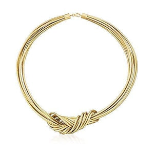 The multiple strands of this chic necklace are crafted of silicone with a fine inner wire of sterling silver, and form a large, statement-making knot at the center. Golden poly wires wrap the silicone, giving it a warm glow. What could be better than a big, bold look for such a nice price? Necklace finishes with a 18kt yellow gold over sterling silver lobster clasp. Made in Italy. Flex knot necklace. Each Ross-Simons item arrives in a fine jewelry presentation box. Shop Ross-Simons jewelry risk-free as all items include a 30-day, 100% money-back guarantee. Italian knot necklace.