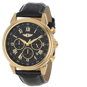 Invicta Men's I by Invicta Collection Gold Tone Stainless Steel Quartz and Black Leather Band Watch, Black (Model: 90242-003)