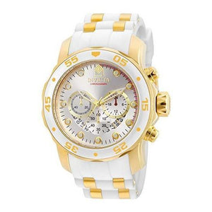 Invicta Men's Pro Diver Scuba Gold Tone Stainless Steel and White Silicone Chronograph Quartz Watch, White