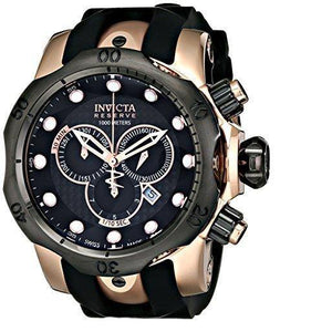 The ultimate high-quality, high-performance timepiece, the Invicta Men's Reserve Venom Rose Gold Tone Stainless Steel and Black Silicone Quartz Watch, Black/Rose Gold (Model: 0361).
