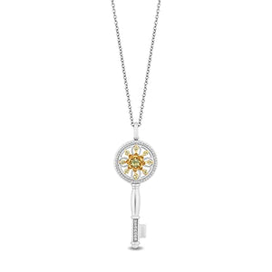 Jewelili Enchanted Disney Fine Jewelry Sterling Silver and 10K Yellow Gold 2.5 MM and 1.25MM Round Peridot and 1/6 Cttw Natural White Round Diamond Tiana Key Pendant Necklace, 18" Cable Chain