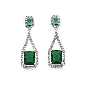 Elevate your style and embrace the timeless charm of these dangle earrings. Let the beauty of sterling silver and the brilliance of simulated emerald and clear crystals speak volumes about your sophistication.