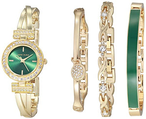Anne Klein Women's Gold/Green Crystal Bangle Watch Set: Timeless Elegance