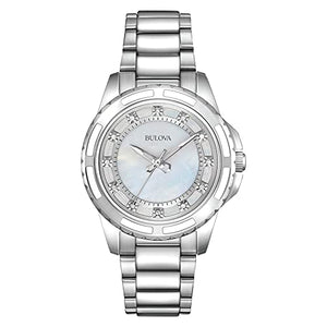Bulova Ladies' Classic Diamond Dial Stainless Steel 3-Hand Quartz Watch, White Mother-of-Pearl Dial Style: 96P144