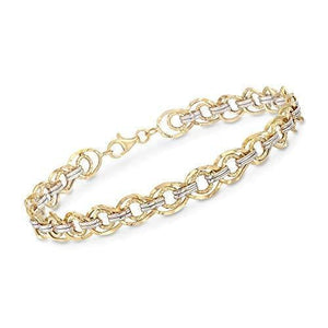 The links are textured and polished in yellow and white 14kt gold. 1/4" wide. Lobster clasp, 14kt two-tone gold link bracelet. Each Ross-Simons item arrives in a fine jewelry presentation box. Shop Ross-Simons jewelry risk-free as all items include a 30-day, 100% money-back guarantee.