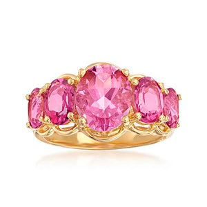 The five-stone design blushes with 4.58 ct. t.w. pink topaz ovals in polished 18kt yellow gold over sterling silver. 1/2" wide. Pink topaz ring. Each Ross-Simons item arrives in a fine jewelry presentation box. Shop Ross-Simons jewelry risk-free as all items include a 30-day, 100% money-back guarantee. Color: Pink Topaz.
