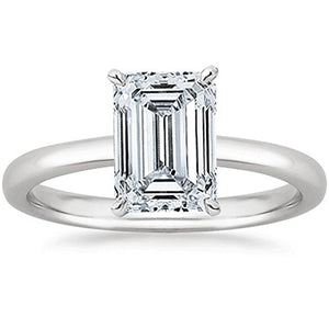 Houston Diamond District 2-3 Carat Emerald Cut Moissanite Engagement Statement Wedding Band Ring for Women in 14k White Gold (D-E, VS1, 3 CTW) Anniversary Promise Ring Size 4.5 to 11