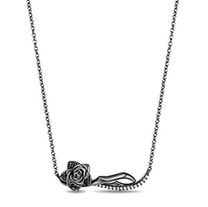 Enchanted Disney Fine Jewelry Black Rhodium over Sterling Silver with 1/8 CTTW Black and White Diamond Maleficent East-West Rose Pendant Necklace