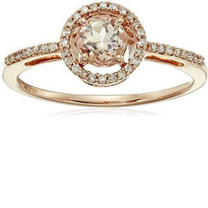 Create a special gift for yourself or people you love with this Jewelili 10K Rose Gold 5mm Morganite and Natural White Diamond Halo Ring. Jewelry to make you feel unique, discover the perfect Jewelili 10K Rose Gold 5mm Morganite and Natural White Diamond Halo Ring for every mood and outfit. The perfect piece of jewelry to compliment your look. Celebrate special occasions with special jewelry at the best prices from Jewelili.