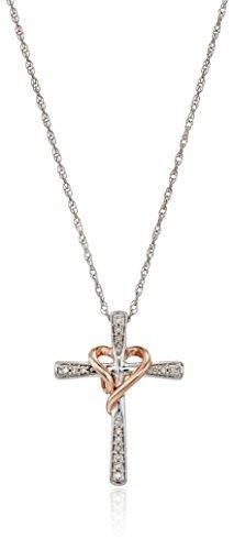 Wear your faith in style with this Jewelili 14K Rose Gold Silver Diamond Heart Cross Pendant Necklace.