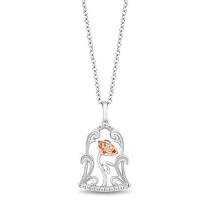 Belle's elegant beauty is clearly depicted in this gorgeous Jewelili Enchanted Disney Rose Gold and Silver Diamond Belle 30th Jar Pendant Necklace.