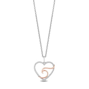 Jewelili Enchanted Disney Fine Jewelry Sterling Silver and 10K Rose Gold 1/6 Cttw Natural White Round Diamond Moana Heart Pendant Necklace, 18" Cable Chain