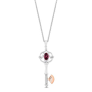 Elegance and Meaning of Jewelili Enchanted Disney Fine Jewelry Sterling Silver and 10K Rose Gold 6x4mm Oval Shape Rhodolite Garnet and Natural White Diamond Accent Mulan Pendant Necklace, 18" Rope Chain
