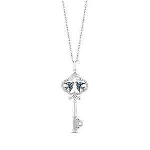 Jewelili Enchanted Disney Fine Jewelry Sterling Silver with 1/10 CTTW Diamond Cinderella 70th Anniversary Key Pendant