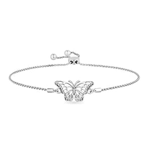 Features of Jewelili Hallmark Fine Jewelry Sterling Silver 1/10 Cttw Natural White Round Diamond Butterfly Bolo Bracelet, 9.5"