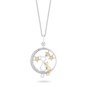 Jewelili Hallmark Fine Jewelry Star Gazing Mom and Baby Cat Pendant - A Tender Bond Forever Captured