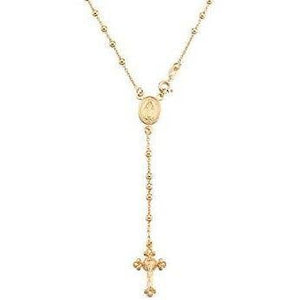 This timeless elegant chain can be worn as a religious symbol or as an everyday cool fashion statement. Looks equally beautiful with casual jeans and t-shirt as it does with a dressy outfit. Wear alone or a layering necklace. This classic MiaBella 18K Gold Over Sterling Silver Italian Rosary Bead Cross Y Necklace Chain for Women Men, 20 Inch features an oval Miraculous Medal of the Virgin Mary and a traditional cross. Wear it as a religious symbol or as a fashion statement. Crafted in Italy