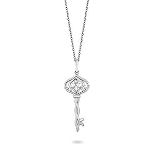 Jewelili Hallmark Fine Jewelry Sterling Silver with Diamond Accents Filigree Key to Romance Pendant Necklace, 18" Cable Chain