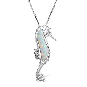Elegant Design: The seahorse pendant is a whimsical yet elegant addition to your attire. The created opal at the center adds a pop of color, while natural white diamond accents enhance the overall allure.