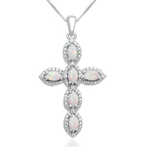 Jewelry to make you feel unique, discover the perfect Sterling Silver 5x3mm Oval Created Opal and Created White Sapphire Cross Pendant Necklace for every mood and outfit. The perfect piece of jewelry to compliment your look. Celebrate special occasions with special jewelry at the best prices from Jewelili.