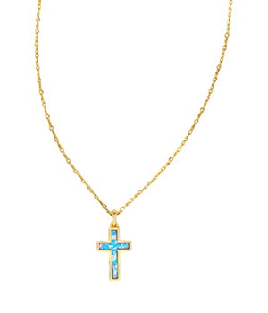 Introducing the Kendra Scott Cross Pendant Necklace in resplendent Gold and Periwinkle Opal. Elevate your everyday style with a personal reminder that transcends fashion, making a profound statement about what matters most to you.