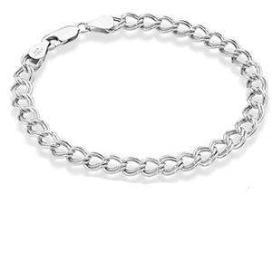 Add style to a basic look with this sterling silver Curb bracelet. Polished to a bright shine, this unique double link bracelet is strong and durable for daily wear. A chain that gives modern elegance to both casual and formal outfits, wear alone as an everyday classic, personalized with sentimental dangle charms or as a stacking bracelet for a cool fashion statement. So versatile, it can be worn alone, with your favorite charms or as a great stacking bracelet. Made in Italy.