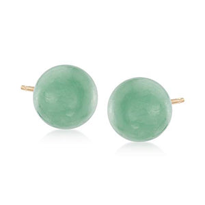 - JADE AND 14KT YELLOW GOLD — 10mm green jade stud earrings in 14kt yellow gold. 10mm round jade beads. Post/clutch.