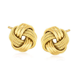 From Italy, love knots are crafted in textured and polished 18kt yellow gold over sterling silver to create this stylish and meaningful pair of earrings. Post/clutch, 18kt yellow gold over sterling silver love knot earrings. Each Ross-Simons item arrives in a fine jewelry presentation box. Shop Ross-Simons jewelry risk-free as all items include a 30-day, 100% money-back guarantee.