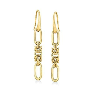 Made in Italy, classic Byzantine sections alternate with on-trend paper clip links for a stylish look. Crafted in polished 18kt yellow gold over sterling silver. Hanging length is 1 7/8". Earwire, 18kt gold over sterling Byzantine and paper clip link drop earrings. Each Ross-Simons item arrives in a fine jewelry presentation box. Shop Ross-Simons jewelry risk-free as all items include a 30-day, 100% money-back guarantee.
