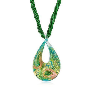 Tonal shades of green shimmer with golden flecks along the Murano glass teardrop pendant that suspends from a six-strand beaded necklace. Each pendant is unique and will vary. Includes a 2" extender. 18kt yellow gold over sterling silver. Lobster clasp, Murano glass bead necklace. Necklace drop length - 2 3/8 inches long. Necklace drop width - 1 3/8 inches wide. Each Ross-Simons item arrives in a fine jewelry presentation box. Established in 1952, Ross-Simons presents contemporary styles with a timeless appeal.