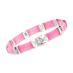 With its meaningful design, this pink jade bracelet adds a feminine accent to any style. Pair it with your casual or formal attire. Pink jade "good fortune" bracelet in sterling silver. 16x8mm carved pink jade. Polished finish. 7 1/2 in. long. 1/4 in. wide. This bracelet is a favorite among jade lovers, as it shows off a bright pink hue in sleek 16x8mm rectangular bars. Box clasp features the Chinese symbol for "good fortune" in polished sterling silver. Double figure 8 safety. Pink jade Chinese symbol bracelet. Each Ross-Simons item arrives in a fine jewelry presentation box. Shop Ross-Simons jewelry risk-free as all items include a 30-day, 100% money-back guarantee.
