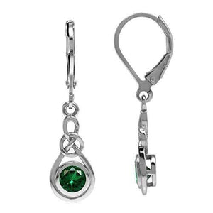 Silvershake Nano Green Emerald 925 Sterling Silver Celtic Knot Leverback Dangle Earrings