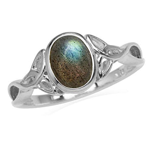 Silvershake 8X6mm Oval Shape Labradorite White Gold Plated 925 Sterling Silver Triquetra Celtic Knot Ring: Unveil the Magic of Labradorite